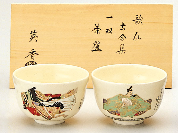 【茶道具 抹茶碗】歌仙 古今集 一双茶碗 宮地英香作