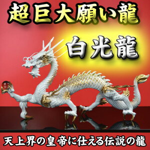 【送料無料】NO-3【超巨大】願い龍★光龍シリーズ★願い龍の最高位◆【白龍】◆天帝白光龍◆豪華特典◆天然水晶玉&黄金水盃&木製台座付き白神龍/光龍/辰/ホワイトドラゴン/白竜/天然石ドラゴンボールを持った白い龍の置物/風水グッズ
